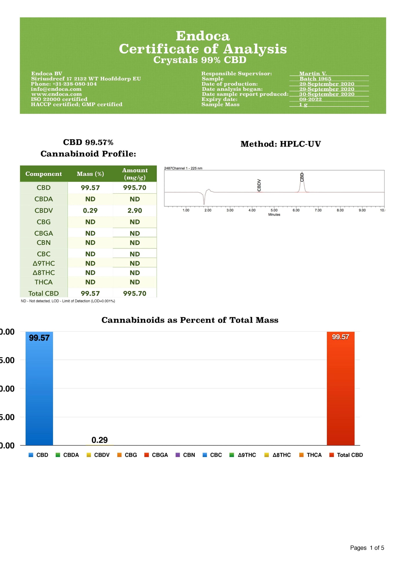 Endoca 1000mg 99% CBD Cannabis Crystals - 1g